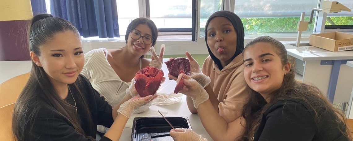Mit Begeisterung, Interesse und Herzklopfen wurden die frischen Schweineherzen von der 5 D seziert, anatomische Besonderheiten genau untersucht