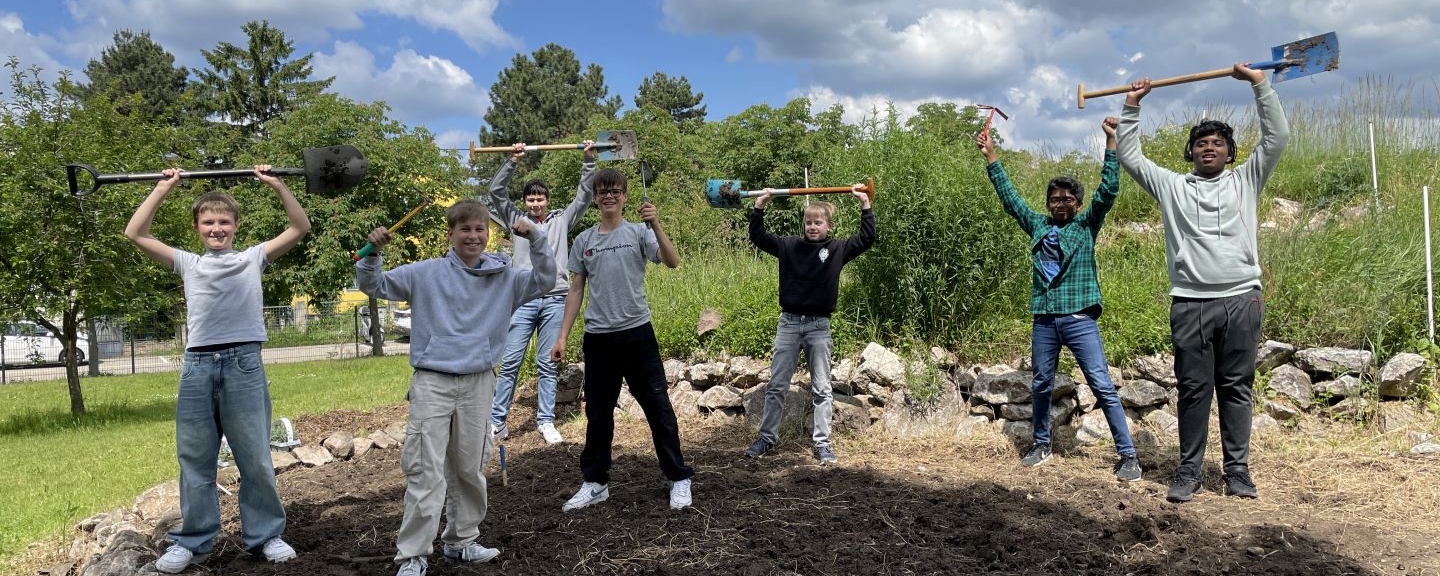 Seit März 2025 hat die 2E/3E mit großer Motivation an ihrem „Feld“ im Schulgarten gearbeitet.