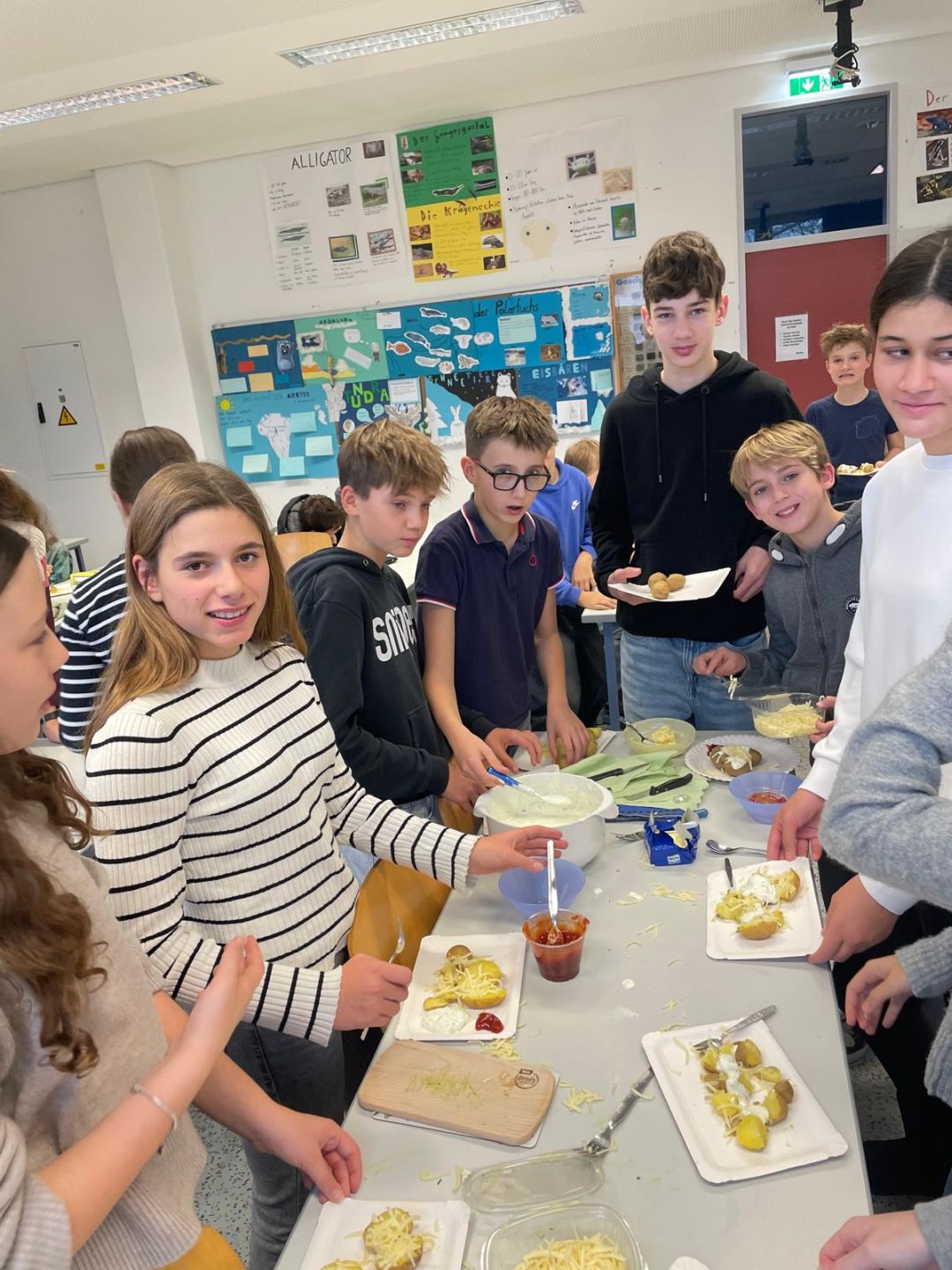 Seit März 2025 hat die 2E/3E mit großer Motivation an ihrem „Feld“ im Schulgarten gearbeitet. Zuerst wurde ein altes Vlies, unter größter Kraftanstrengung, entfernt. Danach hat die Klasse umgegraben und Kartoffeln angepflanzt. Diese sind dann über den Sommer gut gewachsen und konnten schlussendlich im Oktober von den SchülerInnen geerntet werden. Am Freitag 14.11. war es dann so weit und die Klasse hat gemeinsam mit ihrer Biologielehrerin Barbara Nußbaumer die Erdäpfel im Biologiesaal gekocht und mit köstlichen Zutaten verfeinert verspeist. Es war ein langes und sehr lehrreiches Projekt, dass wir alle genossen haben!