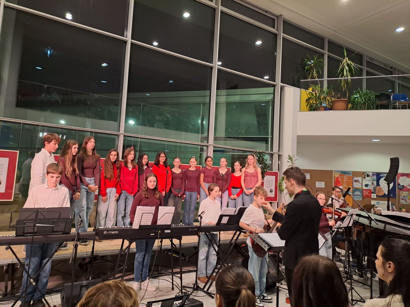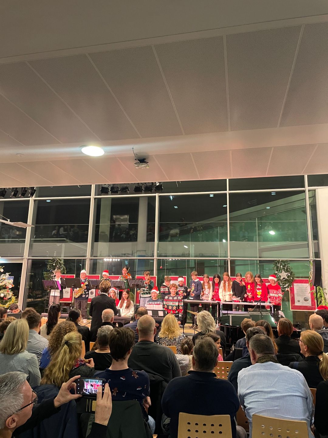 Am 18. Dezember fand das Weihnachtskonzert der Musikklassen und ihrer Gäste statt. Die Aula war bis auf den letzten Platz gefüllt und die Besucherinnen und Besucher erwartete ein abwechslungsreiches, buntes Programm. Mit Musik, Gesang und festlicher Stimmung sorgten die Schülerinnen und Schüler für einen stimmungsvollen Abend.