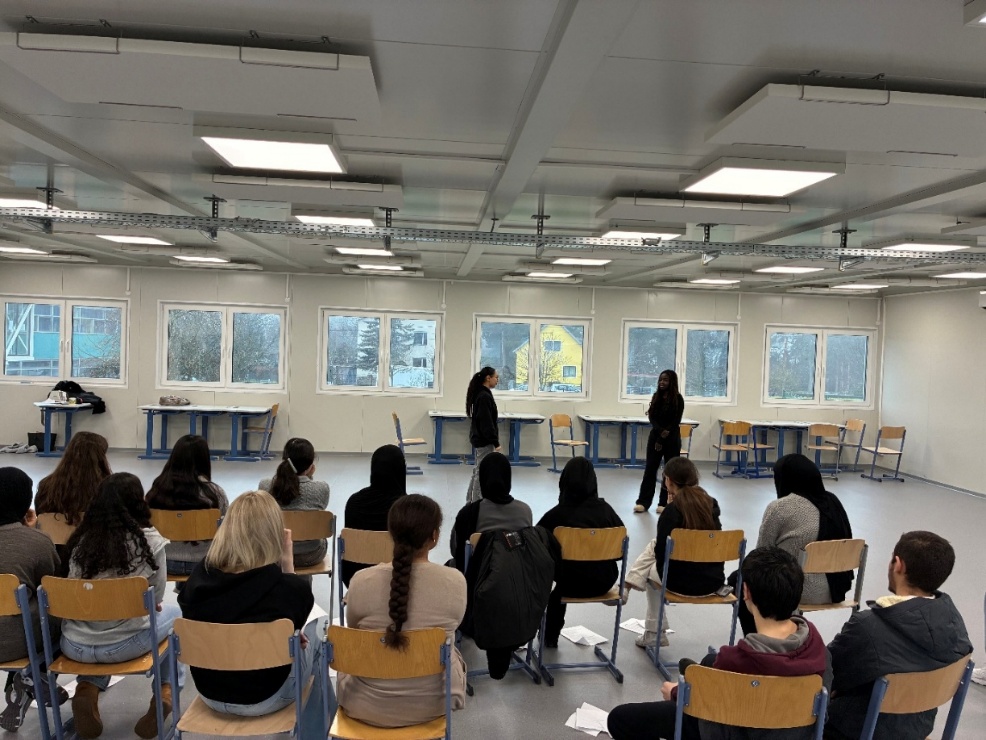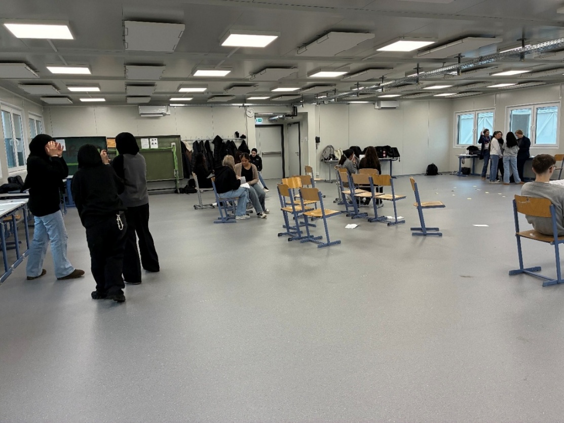 Am 18.12.2025 wurde der Gymnastiksaal für die Schüleri:nnen der 5D zur lebendigen Bühne. Unter der einfühlsamen und inspirierenden Leitung der Theaterpädagogin Mag. Bettina Stokhammer, MA tauchten die Jugendlichen mit großer Begeisterung in die Welt des Stegreiftheaters ein. Der Workshop fand im Rahmen des Programms des Volkstheaters für junges Publikum / Schulklassen statt.