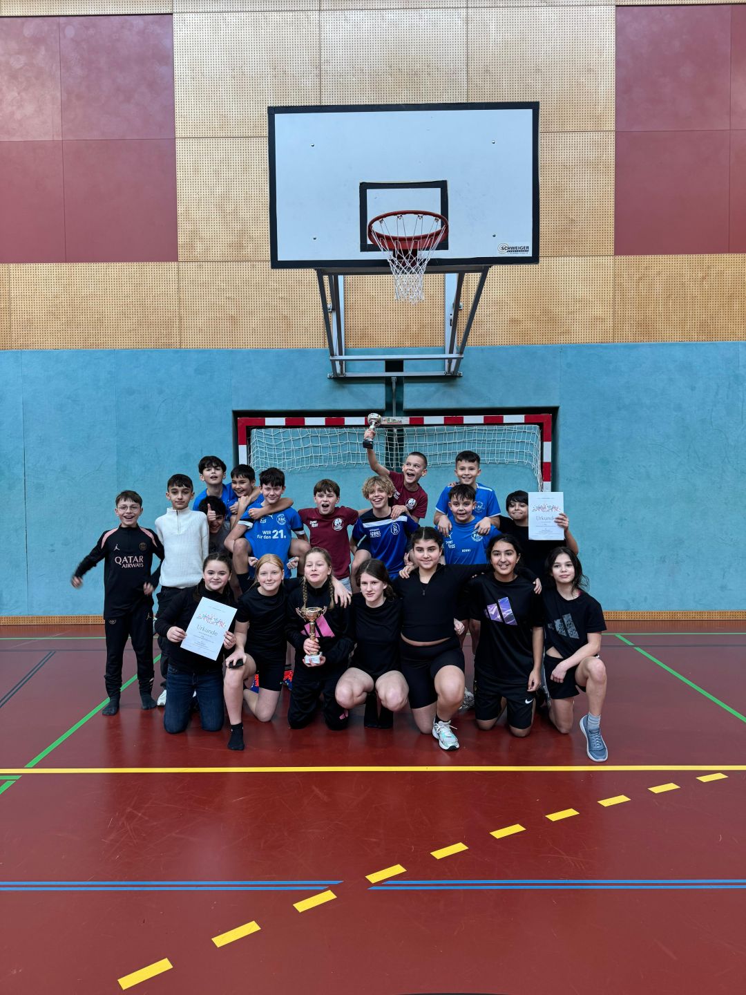 Und so sicherten sich die Mädchen der 1A den ersten Platz, gefolgt von den Spielerinnen der 1G und der 1B, die den zweiten bzw. dritten Platz belegten. Den ersten Platz bei den Buben erkämpfte sich das Team der 1D, gefolgt von Spielern der 1A und der 1F. Der Preis für den Fanclub mit der besten Choreografie ging an die Schülerinnen der 1C.