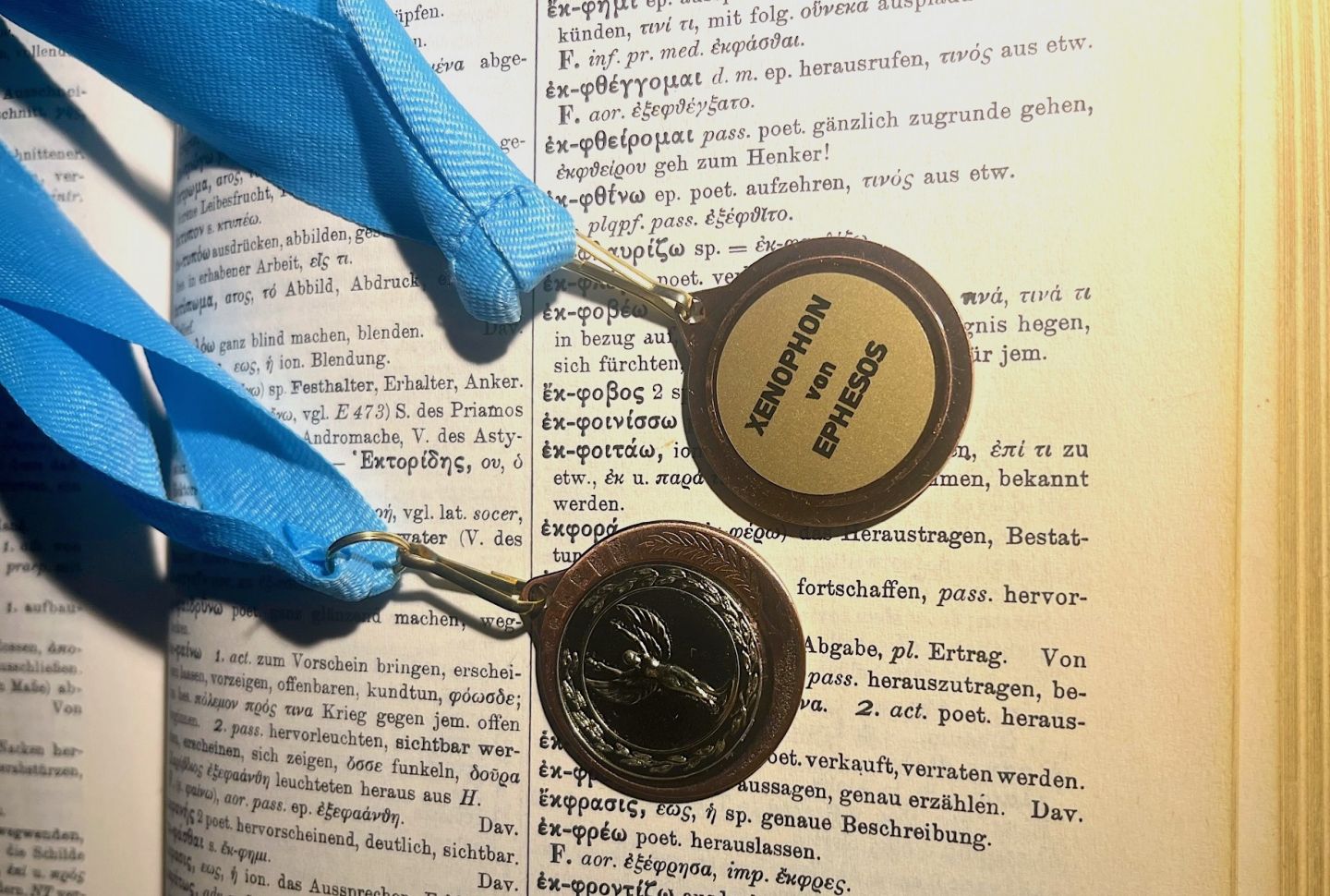 Die Tapfersten der Tapferen haben dabei neben der griechischen Schrift und einem ersten Schatz an Vokabeln auch die A- und O-Deklination, die regelmäßige Konjugation im Präsens aktiv sowie die Konjugation von einai gelernt. Sie wurden von Prof. Ondřej Cikán persönlich mehrfach geprüft und haben somit die Stufe eins, das Level des Xenophon von Ephesos erreicht. Dafür wurden sie mit entsprechenden Orden geehrt. (Xenophon von Ephesos hat in der Kaiserzeit den schundigsten aller Abenteuerromane geschrieben. Unbedingt lesenswert!)